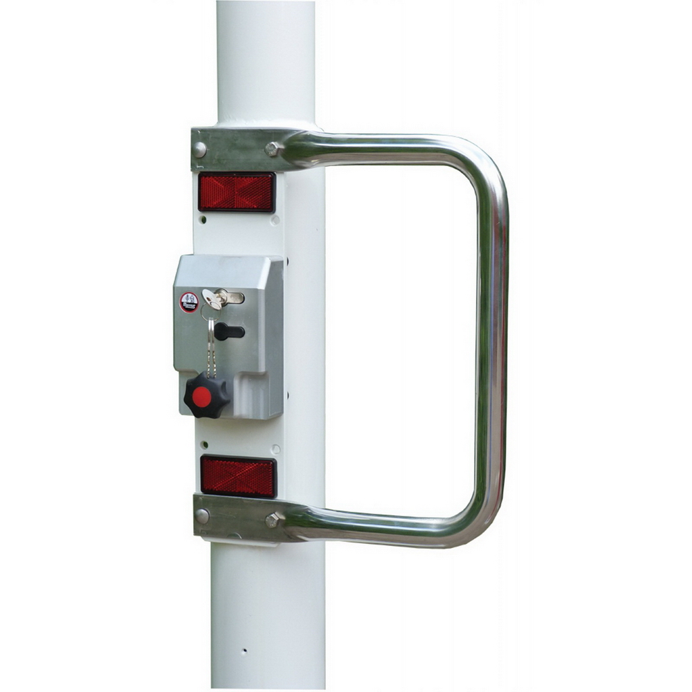 feuerverzinkt, weiß beschichtet mit weiß/rot reflektierenden Leuchtstreifen