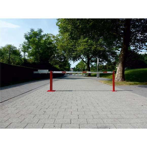 Wegeschranke, 70 x 70 mm, Auflagepfosten 70 x 70 mm, Schrankenbaum Ø 80 mm, ca. 950 mm Überlur, feuerverzinkt, beschichtet