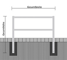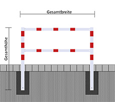 Wegesperren 70 x 70 mm, feststehend, als Rahmen geschweißt, feuerverzinkt, mit Querholm, bestehend aus: