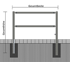 Zusätzliche Bodenhülsen (Typ 470.10) für das Absetzen der geöffneten Schrankenflügel evtl. mitbestellen. (Aufpreis)