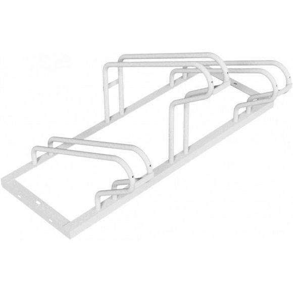 Rahmen aus Winkelprofil, Bügel 19 mm Rundrohr, feuerverzinkt, einseitig, abwechselnd Hoch- / Tiefstellung